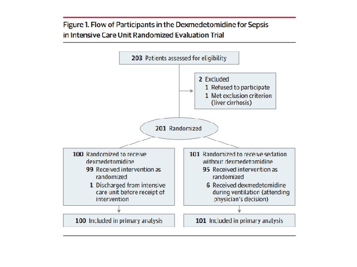 • The Dexmedetomidine for Sepsis in Intensive Care Unit (ICU) Randomized Evaluation (DESIRE) trial • Se uma estratégia de sedação com dexmedetomidina melhoraria a mortalidade e os dias livres de ventilação durante os 28 dias após o início da ventilação entre os pacientes da UTI com sepsis.