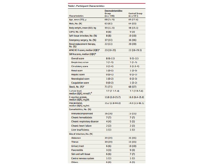 • A sepse foi definida como inflamação sistêmica em resposta à infecção. EXCLUSÃO: • Doença hepática crónica grave (Child-Pugh Grau B ou C) • IAM ou IC classe IV • Dependência de drogas, alcoolismo, doença psicológica, disfunção cognitiva grave. • grávidas ou lactantes ou alérgicas à dexmedetomidina