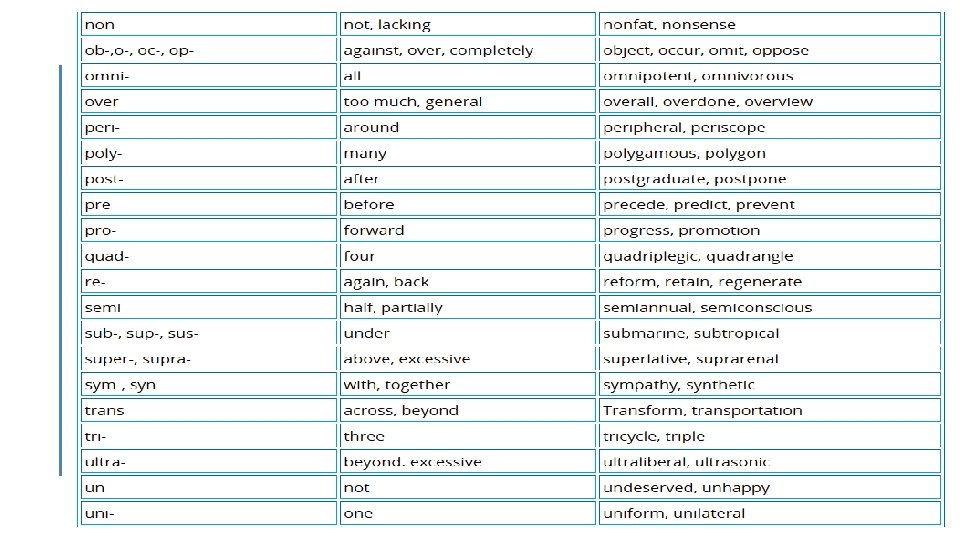 Prefixes Add a prefix to the beginning of each word to make a new word. Draw a line form the word to its meaning. The opposite of pack ____do Do again ____happy Opposite of clear ____clear Read again ____read Not happy ____pack