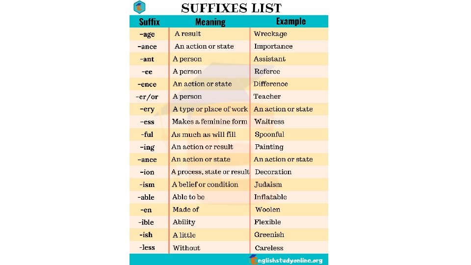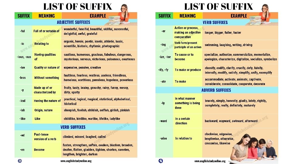 Suffixes Add a suffix to the end of each base word. Match the new meaning. In a loud way Loud____ Full of play Color____ Full of wonder Wonder____ In a sudden way Sudden_____ Full of color Play____