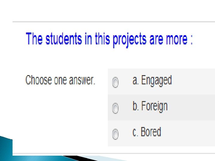 Motivational Benefits �‘Actually I enjoy making a quiz. ’ (Aida) �‘The students want to have some role in the course beside doing exercises. ’ (Asila) �‘I practice my listening because I listened to video many times. ’ (Abir)