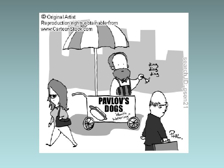 Hot water example • Every time someone flushes a toilet in the apartment building, the shower becomes very hot and causes the person to jump back. Over time, the person begins to jump back automatically after hearing the flush, before the water temperature changes. • • The hot water is the US The jumping back is the UR The toilet flush is the CS The jumping back to the flush alone is the CR