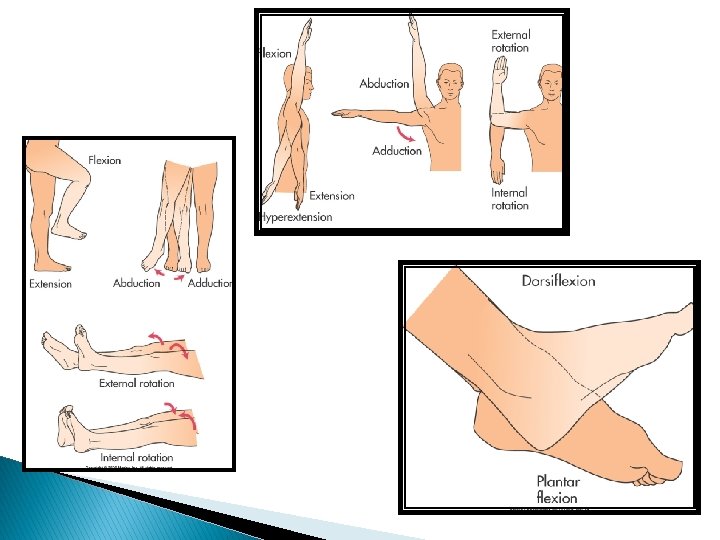 � The care plan includes: ◦ Good alignment ◦ Range-of-motion exercises ◦ Frequent position changes � Positioning ◦ These supportive devices are often used: �Bed boards �Foot boards �Trochanter rolls �Hip abduction wedges �Hand rolls or hand grips �Splints �Bed cradles