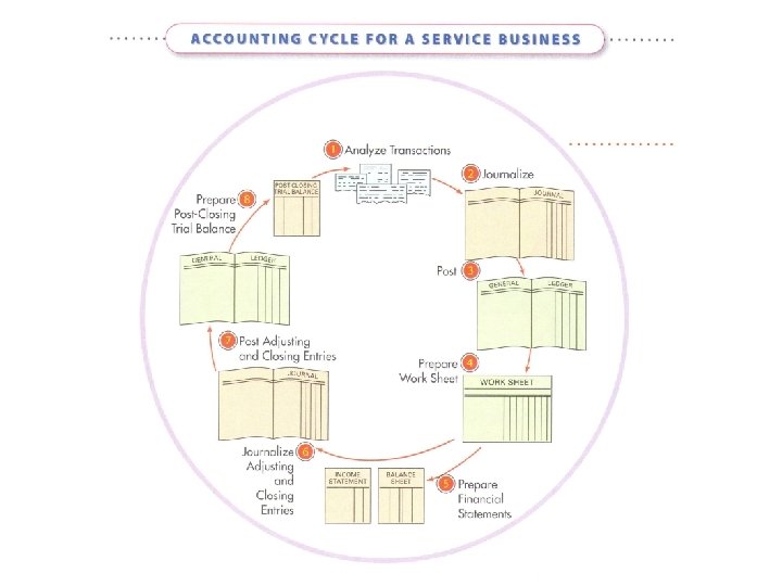 Lesson 8 -2 Accounting Cycle for a Service Business 1 1. 2. 3. 4. 5. 2 8 3 7 6 4 5 LO 2 Analyze transactions Journalize Post Prepare work sheet Journalize and post adjusting entries 6. Prepare financial statements 7. Journalize and post closing entries 8. Prepare post-closing trial balance © 2014 Cengage Learning. All Rights Reserved. SLIDE 24