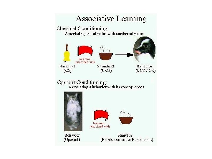 Associative Learning • Classical Conditioning – associating two stimuli • Operant Conditioning – associating a behavior and its consequences