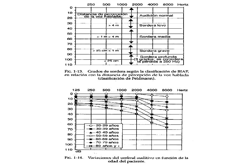 Sordera fluctuante Exploración Se afectan primero las frecuencias graves Curva en forma de colina Muy mala discriminación verbal