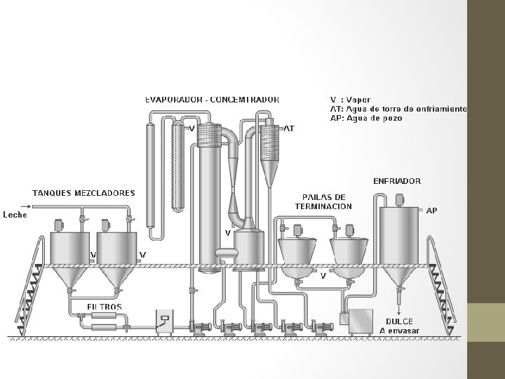 CÁCULO DEL MOMENTO DE FINALIZACIÓN DE LA EVAPORACIÓN • Para leche condensada azucarada. • Factor de corrección por Temp RESTAR = 0, 0006 x (Temp de evap. – 15ºC) MG: min 8% SNG: min 20% Az: min 43, 5% H 2 O: máx 28, 5%