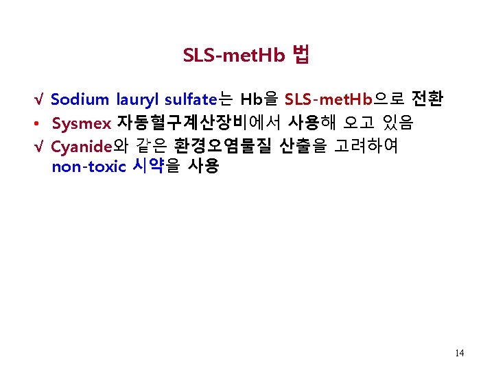 Hemo. Cue Hb 201+ System https: //www. youtube. com/watch? v=a 6 lw. JG 8 U 5 k. A Fig. 14 -19. Rodak Hematology, Keohane ME. Et al. , 5 th Ed. 2016, p 205 13