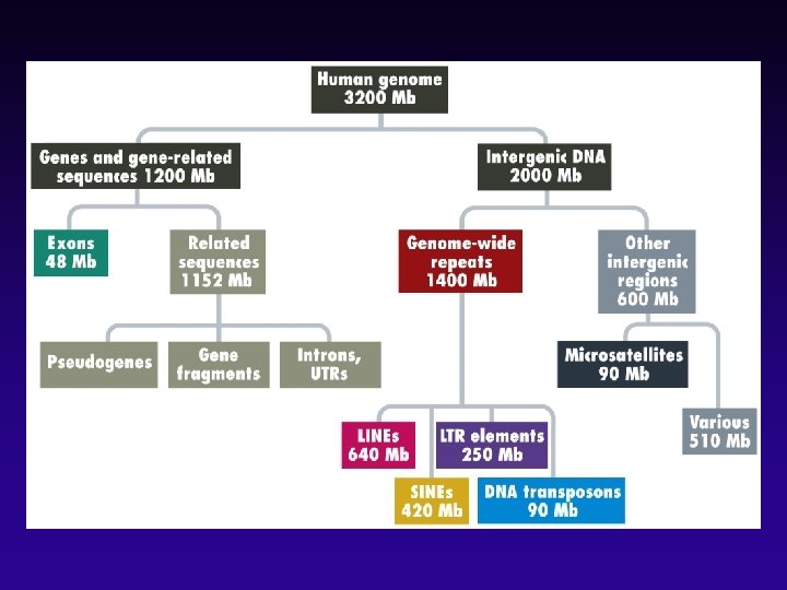 Noncoding DNA is part of Answer Human: 3500 Mbp Fugu: 365 Mbp