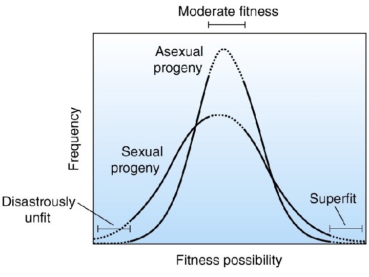 Asexual vs. Sexual Reproduction § Asexual reproduction – Benefits – Offspring are well adapted to current conditions – Potential for high population growth – Costs – Low genetic variability in the population – May be unable to adapt to a change in environmental conditions • Sexual – Benefits – High genetic variability in the population – Increased probability that some individuals will survive environmental changes – Costs – Parents only contribute one half of its genes – Specialized reproductive organs required – Expense of reproduction not equally shared between parents