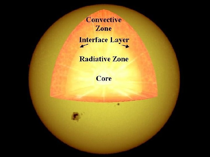 Solar Structure • THE SOLAR ATMOSPHERE – – Solar Wind Corona Chromosphere Photosphere The “Surface” of the Sun • THE SOLAR INTERIOR – The Convection Zone – The Radiative Zone – The Core