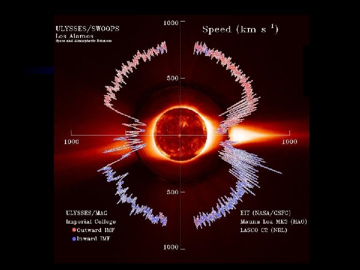 The Solar Wind • Earth and all the planets in the Solar System are immersed in the Sun's expanding outer atmosphere. • This out flowing of solar material (10 million tons per year) is called the solar wind. • Spacecraft measurements show that the solar wind is fast (400 km/s, about a million miles per hour), thin (a few particles per cubic centimeter), and hot (several hundred thousand degrees).