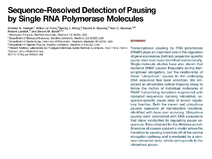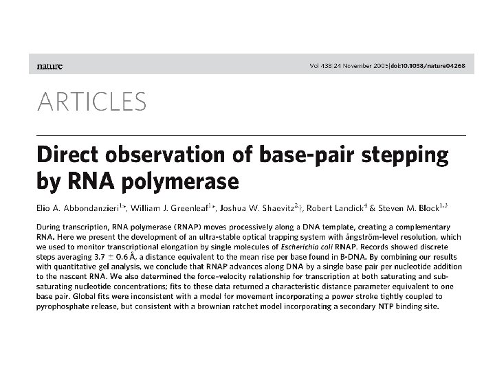 Lecture 12 RNA polymerase as a molecular motor Transcriptional control