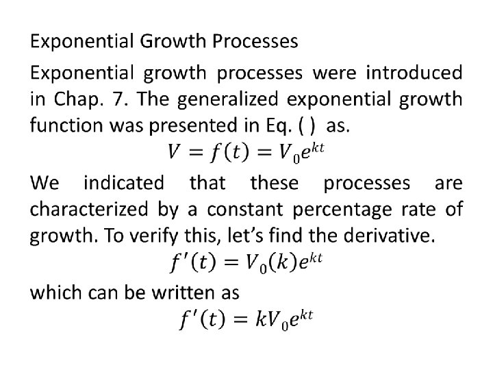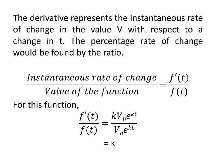 This confirms that for an exponential growth function of the form of Eq. (7. 9), k represents the percentage rate of growth. Given that k is a constant, the percentage rate of growth is the same for all values t.