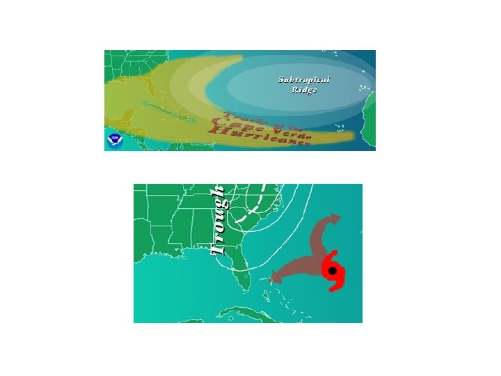Tropical cyclone tracks and geography • Tropical cyclones are steered by the background flow • • • throughout the depth of the troposphere (eestward with slight poleward component) Depends on strength of subtropical ridge May take a more northward component and then recurve eastward if ridge is weak However, a tropical cyclone will modify the background flow and as in so many other cases, there is not clear cut way of teasing the two apart. Beta effect A difficult forecast problem