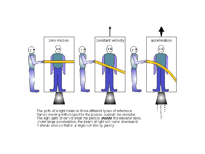 • Clearly, our assumption must be wrong… – light must be affected by gravity. – But gravity does not appear in Maxwell’s equations, which govern light – Thus, Maxwell’s equations are not exactly valid in the reference frame of Earth’s surface, where there is gravity. – The Earth’s surface must not be an inertial frame of reference!