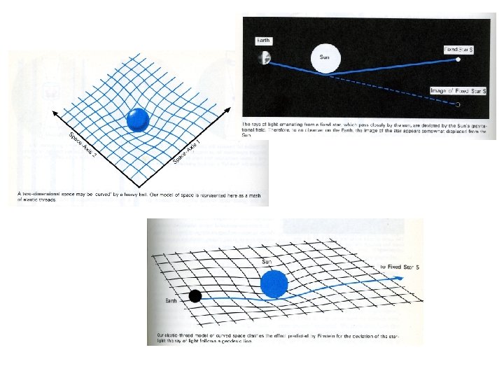 Warping of space by Sun’s gravity • Light rays follow geodesics in warped space