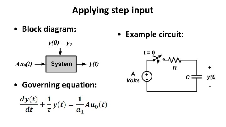 Applying step input • Block diagram: • Governing equation: • Example circuit: