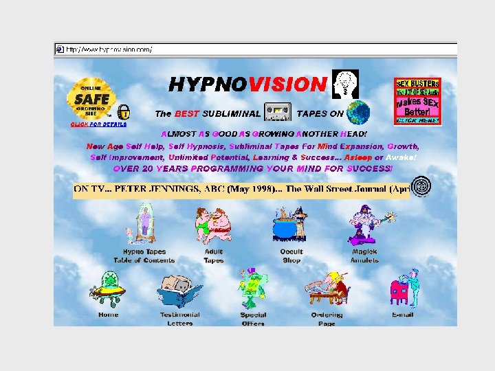 Multimedia class exercise • Let’s do a Google search on “subliminal recordings” and see what kind of information is available from sellers about the effectiveness of the products. • Two of the most popular sites: – hypnovision. com – subliminal-tapes. com