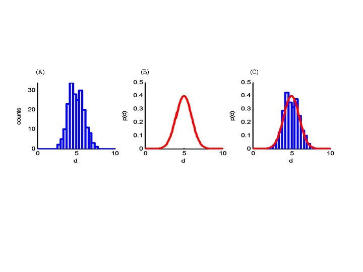 step 1: usual formula for mean d <d> data step 2: replace data with its histogram <d> ≈ s Ns ds histogram step 3: replace histogram with probability distribution. <d> ≈ ≈ s s Ns N P(ds) p ds probability distribution