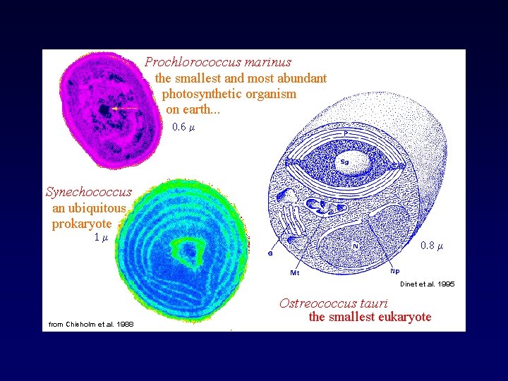 PROKARYOTES (continued): Prochlorococcus • • Discovered in 1988 Very small (<1. 0 µm) Divinyl chl a Counted by flow cytometry • Most abundant autotroph on earth reprinted from Johnson and Sieburth 1979