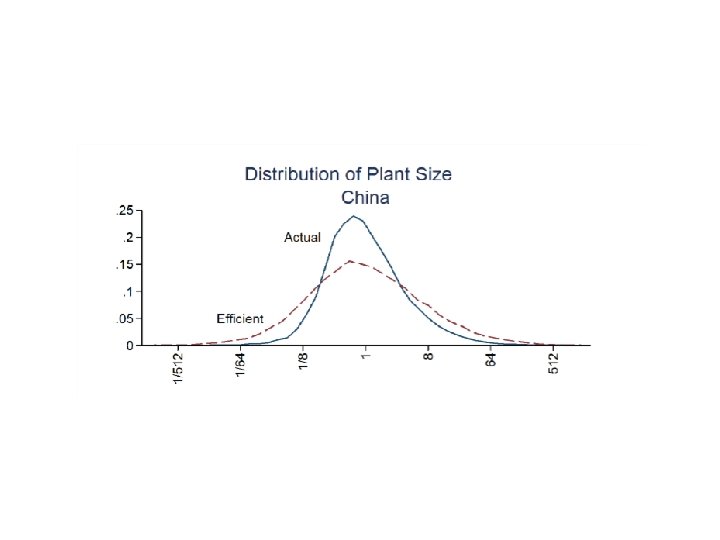 How much misallocation of capital in China? • There is a strong perception that despite strong growth, there may be a severe misallocation of capital in China. • General idea: if distortions favor certain firms, they can survive with lower TFP than firms that do not benefit from those distortions. Hsieh and Klenow (2008).
