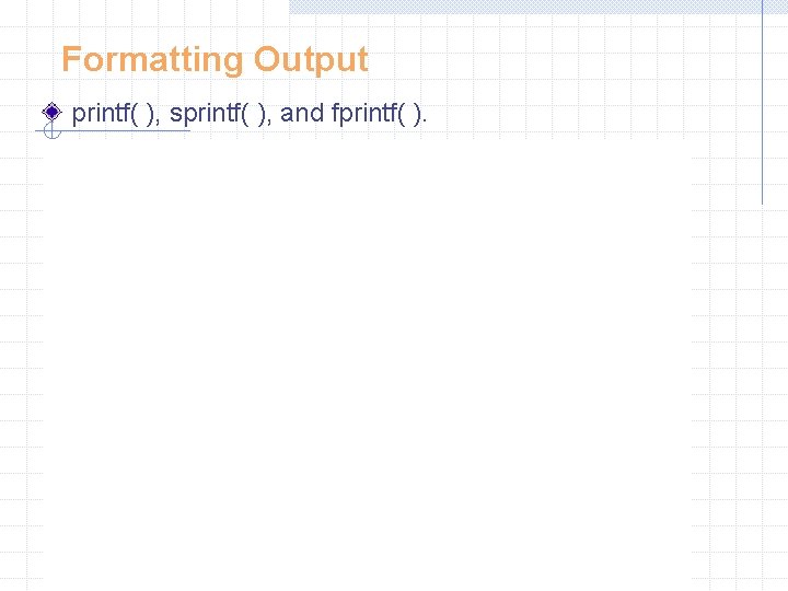 Formatting Output printf( ), sprintf( ), and fprintf( ).