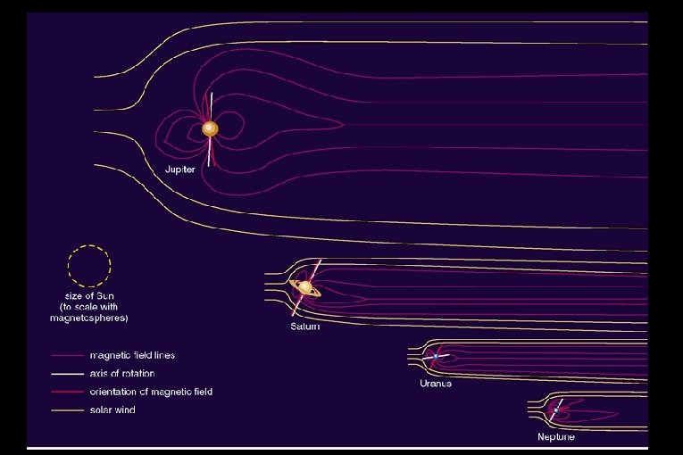 At pressures greater than 3 million atmospheres, H is squeezed so tightly that the atoms are separated into freely moving protons and electrons: liquid metallic hydrogen (LMH). LMH is highly conducting (the electrons are highly mobile) The combination of a metallic hydrogen interior and high rotation rates give the Jovian planets (especially Jupiter) strong magnetic fields.
