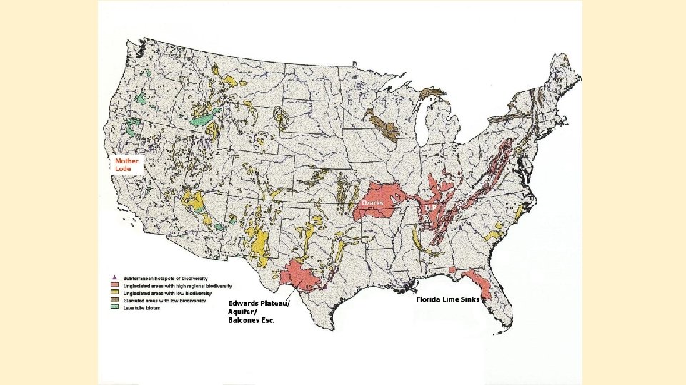 Caves • One of the last frontiers for exploration • Many provide fascinating irreplaceable features and rare species • Kentucky • New Mexico • Sierra Nevada – Sequoia/Kings Canyon NP • Hurricane Crawl Cave • Lilburn Cave • Ursa Minor Cave • Crystal Caverns