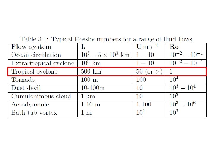 Measure the importance of Coriolis force through scale analysis 1. Characteristic scale for the acceleration = V 2/L [since V/T = V/(L/V)] 2. Characteristic scale for the Coriolis force = f. V 3. Define Rossby number, Ro = (V 2/L)/(f. V) = V/f. L 4. Coriolis force becomes important when Ro ≤ 1