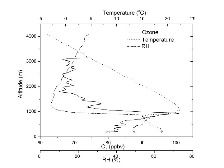 Example 1, early morning Pressure, mb Temp. , °C Dew point, °C 1000 7 6 920 7 7 870 6 0 840 3. 5 -1. 5 700 -8 -16 500 -27 -36 300 -58 250 -67 200 -65 Tropopause Inversion layer Saturated air (T = TD)
