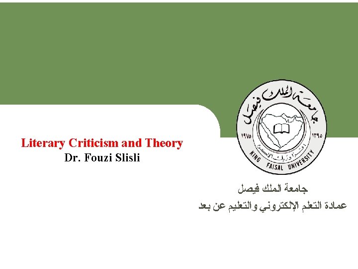 Oral Society v Only in the 20 th century that some scholars finally showed that the poetry that Plato talks about and bans is different from the poetry and art that Europe and the West have. v Paul Kristller drew attention to the fact that the Greeks did not have anything similar to the Western ideas of art and literature. The Western ideas of art and literature did not exist in ancient Greece and Rome: “The Greek term for Art and its Latin equivalent (ars) do not specifically denote the “fine arts” in the modern sense, but were applied to all kinds of human activities which we would call crafts or sciences. ” Paul Kristller, “The Modern System of the Arts, ” in Journal of the History of Ideas, vols. XII-XIII, (1951 and 1952), p. 498. ﻋﻤﺎﺩﺓ ﺍﻟﺘﻌﻠﻢ ﺍﻹﻟﻜﺘﺮﻭﻧﻲ ﻭﺍﻟﺘﻌﻠﻴﻢ ﻋﻦ ﺑﻌﺪ Deanship of E-Learning and Distance Education [ 11 ] ﺟﺎﻣﻌﺔ ﺍﻟﻤﻠﻚ ﻓﻴﺼﻞ King Faisal University
