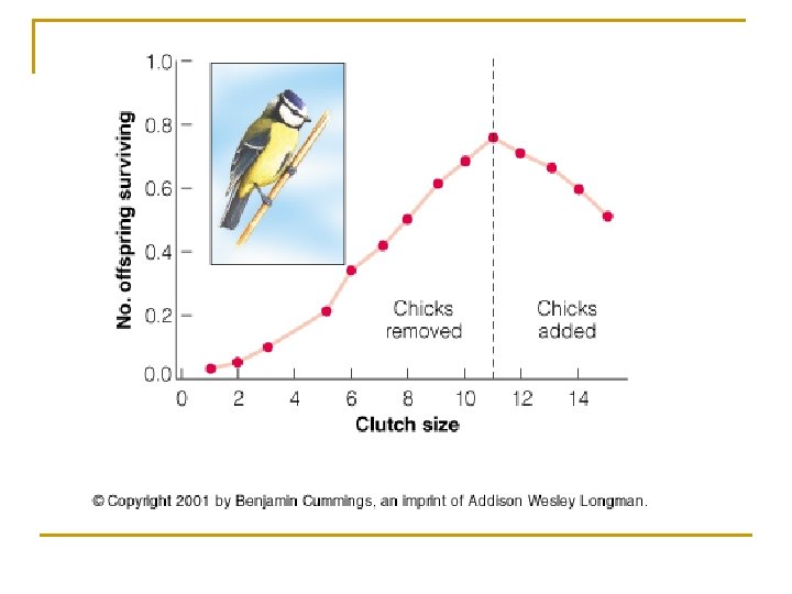 Stabilizing Selection n Blue tit experiment q Observation: n q Hypothesis: n q Normal brood size is 9 -11 eggs. Changing number of eggs will reduce fitness, i. e. offspring survival Experiment: n Add and remove chicks 27
