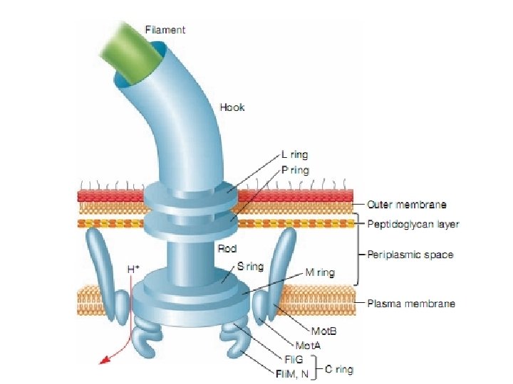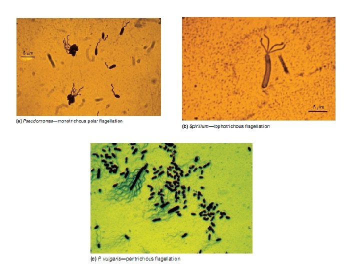 Flagella and Motility • Bacterial flagella are slender, rigid structures, about 20 nm diameter and up to 15 or 20 μm long. • Threadlike locomotor appendages extending outward from the plasma membrane and cell wall. • Bacterial species often differ distinctively in their patterns of flagella distribution and these patterns are useful in identifying bacteria.