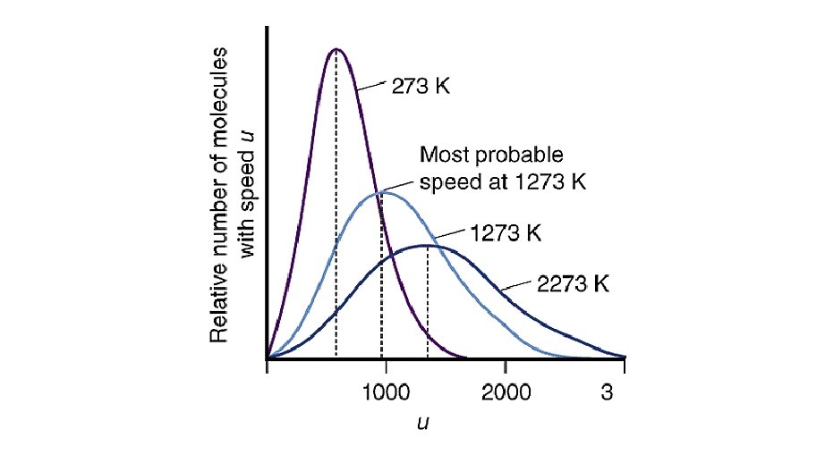 Molecular Speed Distribution Thus far we have discussed the random nature of molecular motion in terms of the average (root mean square) speed. But how is this speed distributed? The kinetic theory predicts the distribution function for the molecular speeds. Below we show the distribution of molecular speeds for N 2 gas at three temperatures.