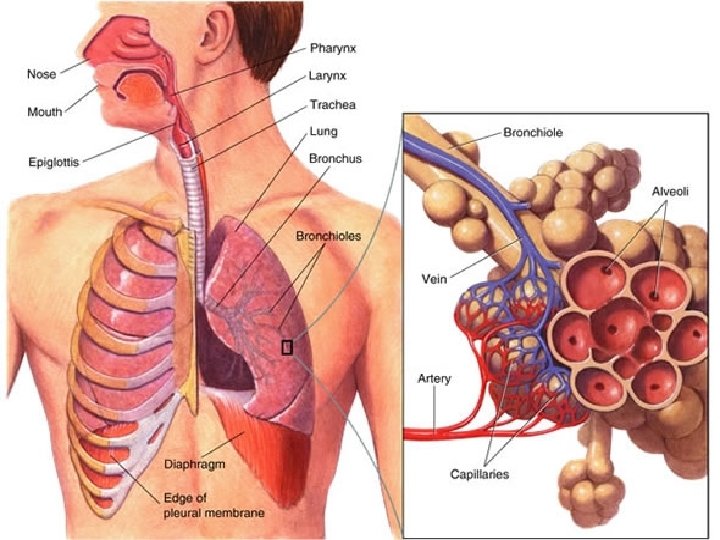 § Emphysma: is the progressive loss of lung function in which alveoli (air sacs) lose their elasticity and breakdown resulting in a loss of respiratory surface in the lungs. § Shortness of breath is the chief symptom (smoking frequently leads to this disorder).