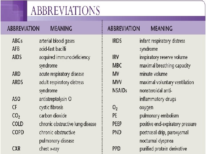 Breathing disorders § Apnea : without breathing § Tachypnea: rapid breathing § Bradypnea : slow breathing § Dyspnea : difficult or painful breathing (shortness of breath “SOB”) § Orthopnea: difficult breathing while supine