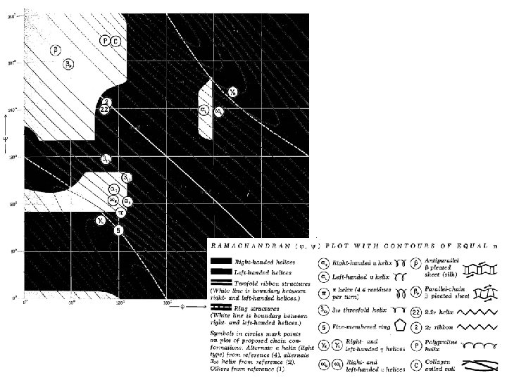 Dependent on the size and flexibility of side chains, only limited ranges of Phi (Φ) and Psy (Ψ) angles are permitted