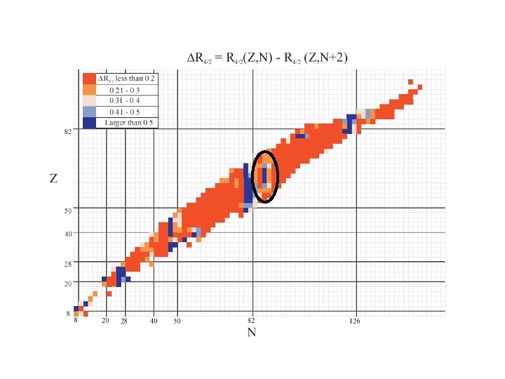 Often, esp. in exotic nuclei, R 4/2 is not available. A easier-to-obtain observable, E(21+), in the form of 1/ E(21+), can substitute equally well