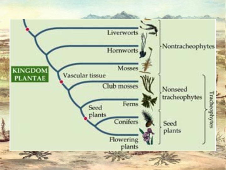 • By the end of the Devonian: – Extensive forests (club moss and horse tail ancestors) with tall trees (Seedless Tracheophytes. Lycophytes) – These plants later were out competed by seed plants and nearly all have gone extinct