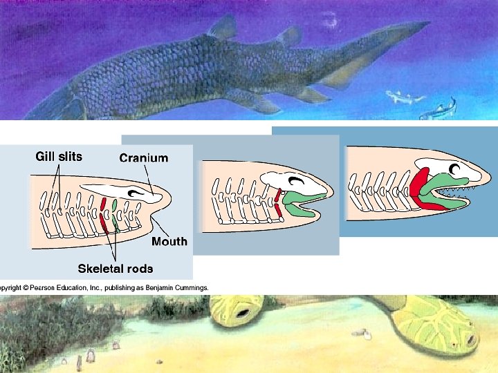Why did Jaws Evolve? • The vertebrate jaw can be traced back to 440 mya • Most jawless fishes went extinct, but jawed fishes became the ancestors for most modern fishes today. • Jaws evolved from gill arches (Gnathostomes- jawed Fish) – From Jawless fish (Agnathas) • Helped fish catch food – Jaws allow mouths to open wide and catch larger prey – Jaws with teeth can bite, crush, and chew. • Protected by bony, overlapping plates, Placoderms were among the first fishes with jaws