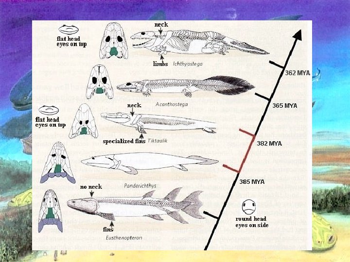 Acanthostega- 365 mya • First Fish with Digits (8 of them) on each limb • Probably Stayed in shallow waters – Limbs could not support weight