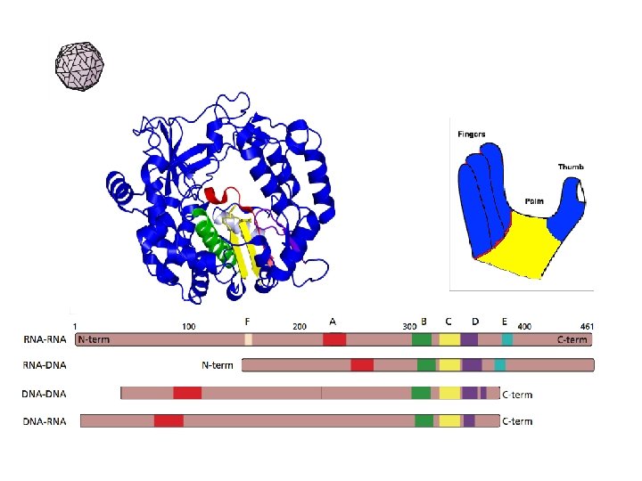 Sequence relationships among polymerases • Gly-Asp in (+) strand RNA polymerases • Asp-Asp in RT, segmented (-) strand polymerases • Gly-Asp-Asn in nonsegmented (-) strand polymerases
