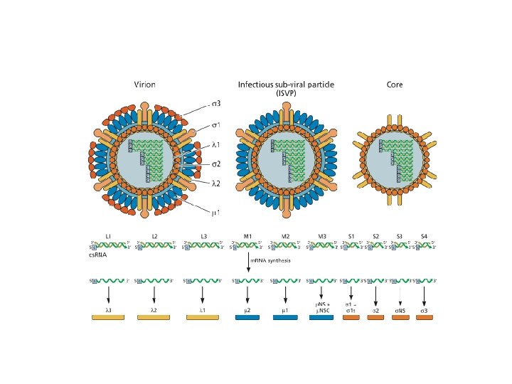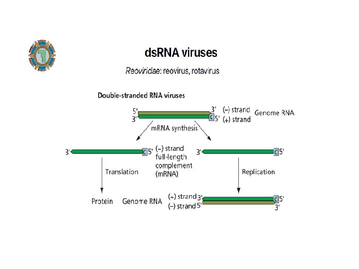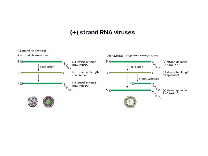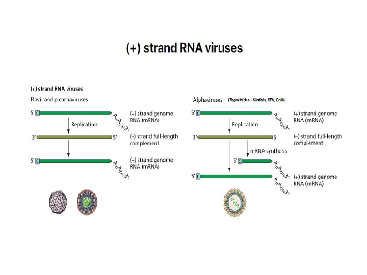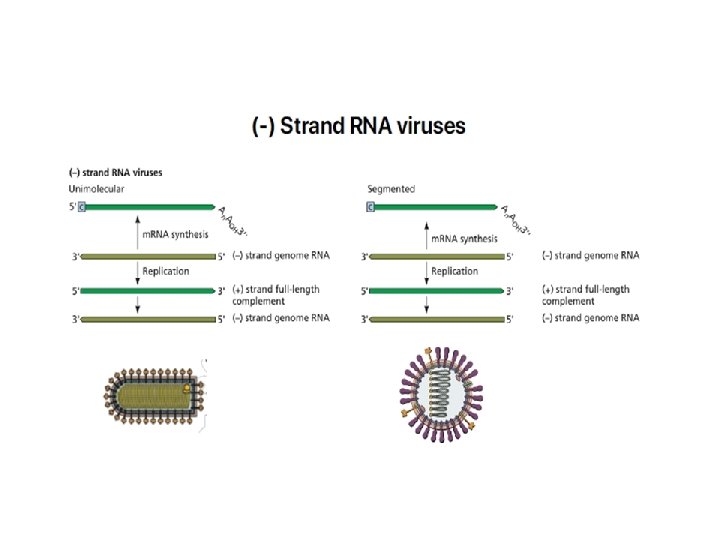 RNA and Rd. Rp in the virus particle • (-) strand RNA genomes: Rd. Rp, RNA coated with protein (nucleocapsid) • (+) strand RNA genomes: no Rd. Rp, naked (exceptions: retrovirus, coronavirus) • ds. RNA genomes: Rd. Rp, naked RNA