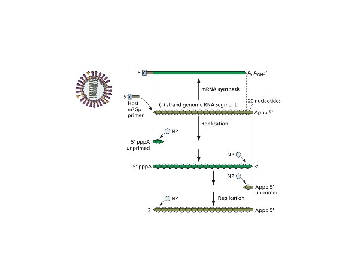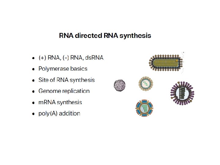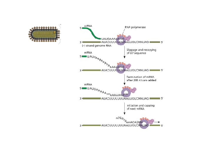 Rules for viral RNA synthesis • RNA genome must be copied end to end with no loss of nucleotide sequence • Viral m. RNAs must be produced that can be efficiently translated by cellular protein synthesis machinery