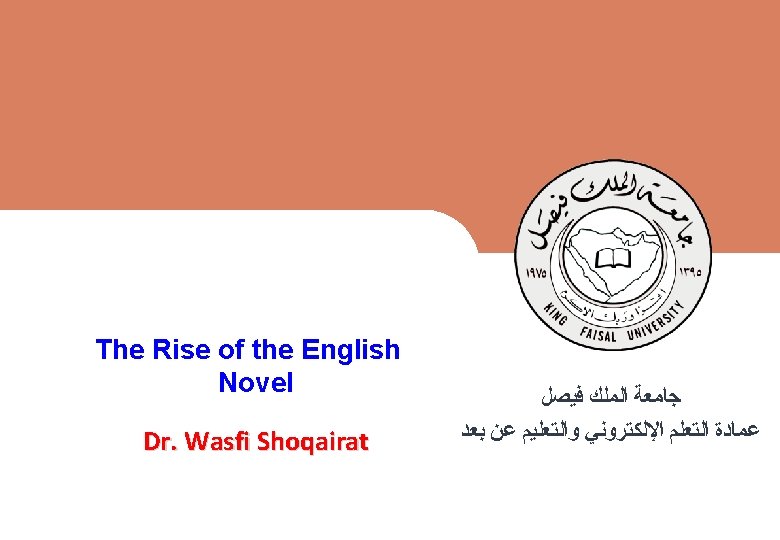 The Historical Novel (Early 19 th Century) - A historical novel is a novel that is set in the past and focuses on a specific historical plot, characters, and setting in the past. This novel started in the 19 th century. Main features: 1 - It may include both fictional and real characters. 2 - It includes convincing detailed description of the manners, building, and scenery of its chosen setting. 3 - It generally attempts to convey a sense of historical verisimilitude. 4 - Recently, it has abandoned reality to fantasy and imagination. Examples: Sir Walter Scott’s Waverley (1814). Charles Dickens’ A Tale of Two Cities (1859). ﻋﻤﺎﺩﺓ ﺍﻟﺘﻌﻠﻢ ﺍﻹﻟﻜﺘﺮﻭﻧﻲ ﻭﺍﻟﺘﻌﻠﻴﻢ ﻋﻦ ﺑﻌﺪ Deanship of E-Learning and Distance Education [ 5 ] ﺟﺎﻣﻌﺔ ﺍﻟﻤﻠﻚ ﻓﻴﺼﻞ King Faisal University