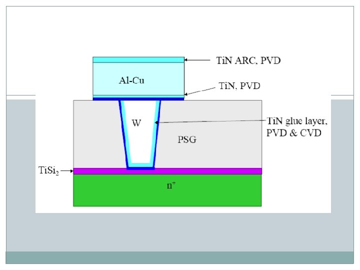 q Barrier Layer q To prevent aluminum diffusion into silicon (junction-spiking) q Ti. N is widely used barrier material