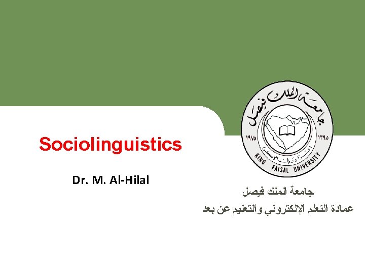 Lecture 7 Sociolinguistics ﻋﻤﺎﺩﺓ ﺍﻟﺘﻌﻠﻢ ﺍﻹﻟﻜﺘﺮﻭﻧﻲ ﻭﺍﻟﺘﻌﻠﻴﻢ ﻋﻦ ﺑﻌﺪ Deanship of E-Learning and Distance Education [ ] ﺟﺎﻣﻌﺔ ﺍﻟﻤﻠﻚ ﻓﻴﺼﻞ King Faisal University