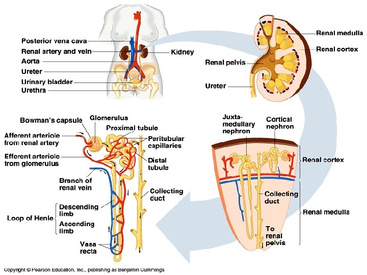 Nephron Function • Proximal tubule: – secretion and reabsorption • Loop of Henle: – reabsorption of water and salt • Distal tubule: – secretion and reabsorption • Collecting duct: – reabsorbs water, salt, some urea