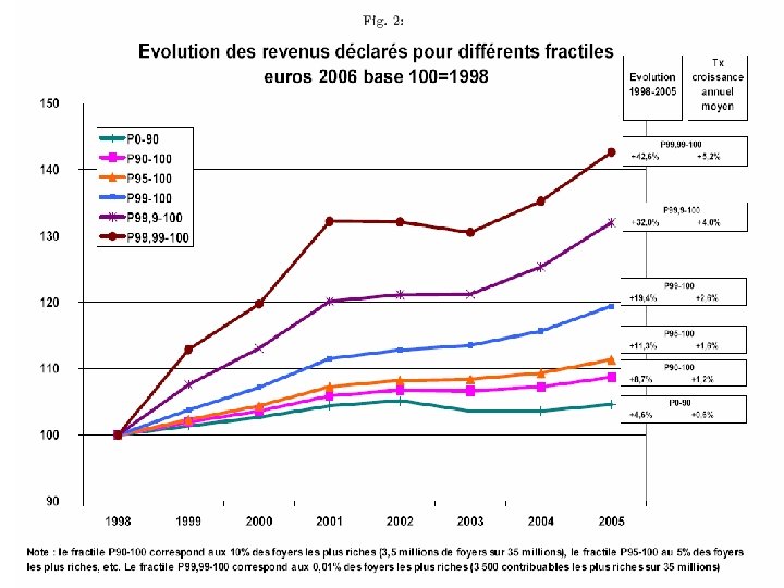 Documents issus de l’enquête de Camille Landais sur les hauts revenus en France (période 1998 -2005) pour l’école d’économie de Paris parue en juin 2007. Les données des graphiques sont tirées déclarations de revenus fiscaux.